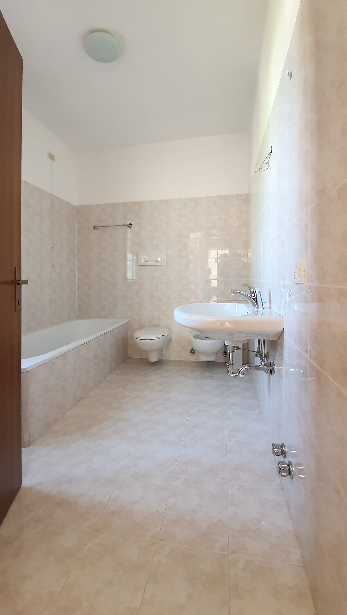 L’appartamento, collocato al primo piano e su unico livello, è dotato di un magnifico soggiorno da 34mq, la cucina separata, due camere (matrimoniale e singola), due bagni finestrati ed un meraviglioso terrazzo abitabile da 22mq (oltre al poggiolo per altri 16mq).